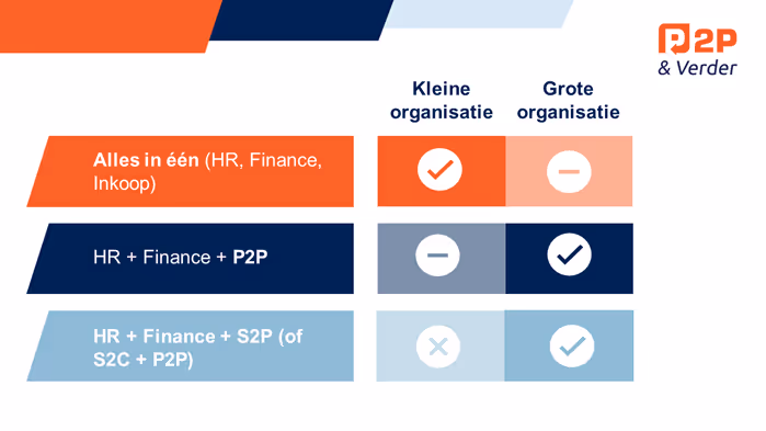 Daarom is een systeem dat naadloos aansluit op de behoeften en wensen van je organisatie belangrijk. Maar waar kies je als onderwijsinstelling voor? Ga je voor een alles in één ERP-systeem? Of moet je kiezen voor een losse P2P- of S2P-applicatie? In algemene zin kun je ervan uitgaan: hoe meer bestellers je hebt en hoe groter je organisatie, hoe sterker de behoefte is voor een losse S2P/P2P-applicatie. Is je organisatie kleiner? Dan is een alles in één ERP-systeem mogelijk voldoende.
